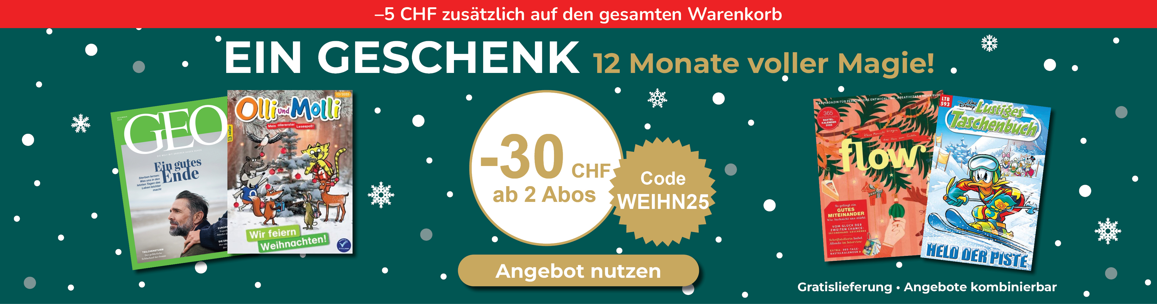 ½-Jahresabo - 26 Ausgaben - PrintDauer: ½-Jahresabo CHF189.00CHF252.20Kioskpreis -